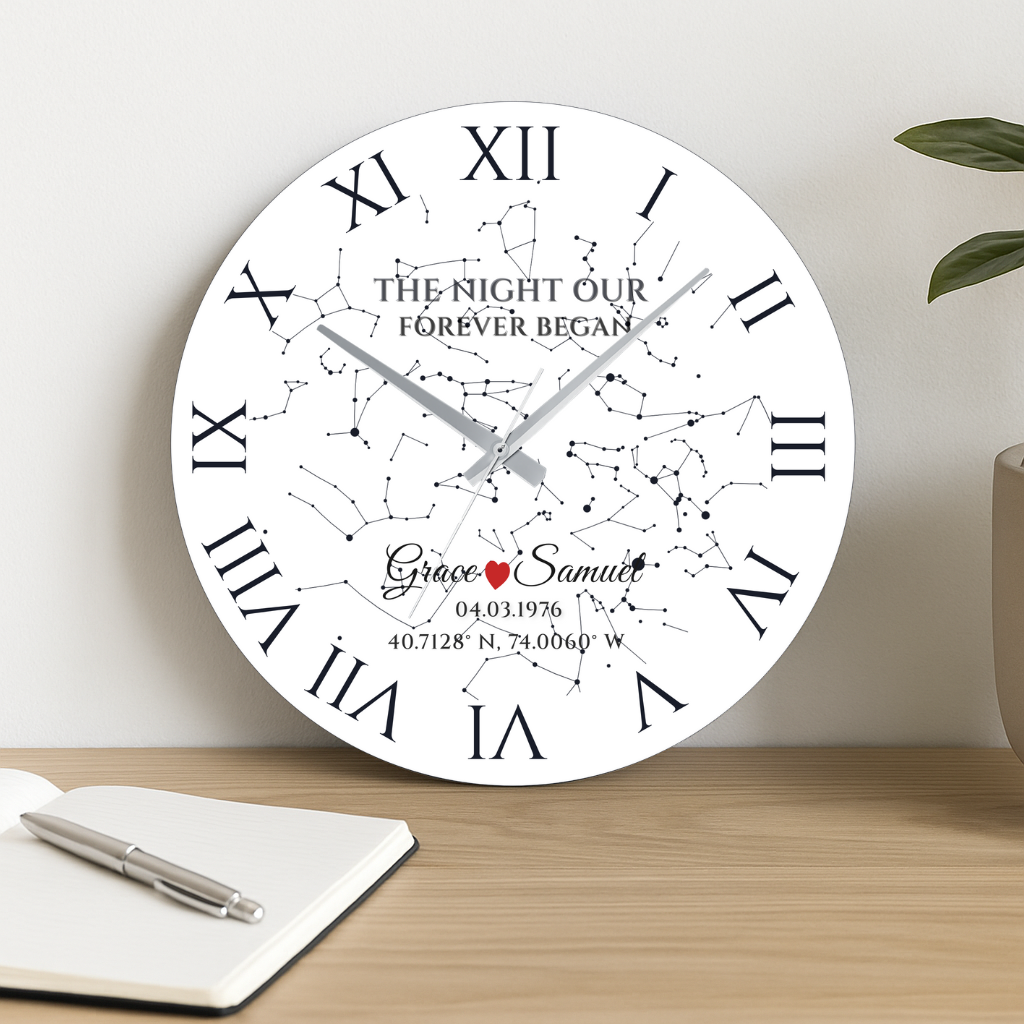Custom Star Map Wall Clock – Personalized Anniversary Gift for Partner
