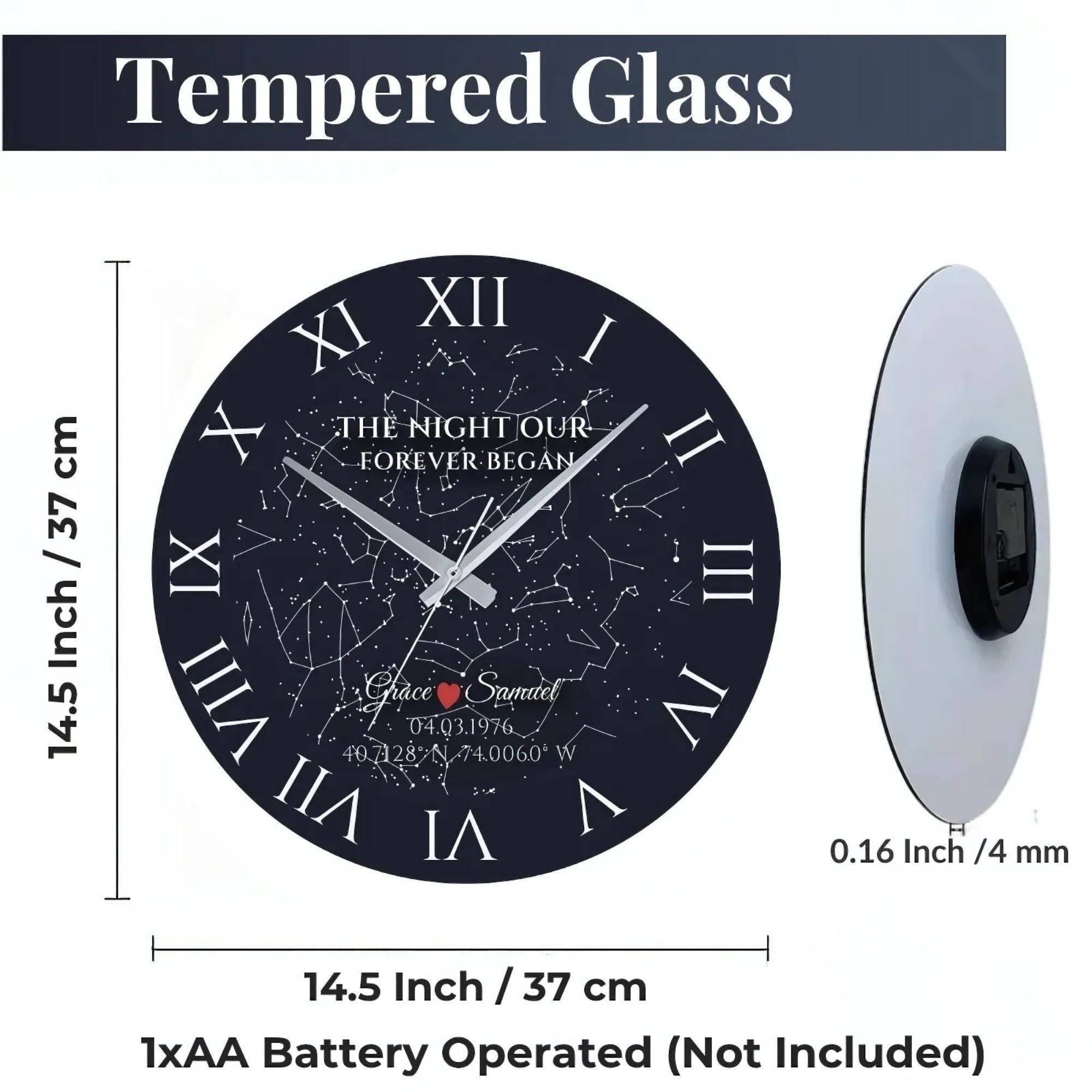 Personalized Star Map Wall Clock on Tempered Glass – Custom Night Sky Gift for Couples, Anniversary Present by Zepira Luna